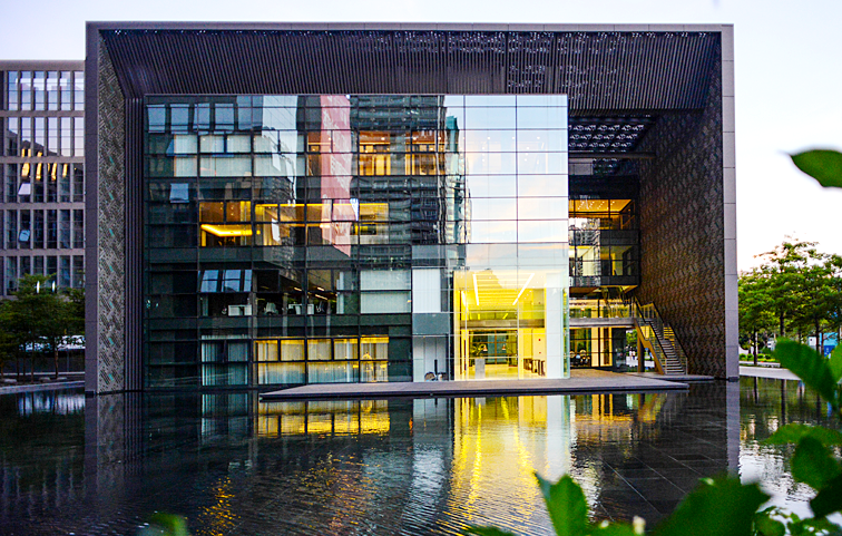 花樣年集團總部位于深圳市福田保稅區(qū)福年廣場,整個廣場是以“極簡、藝術(shù)、生態(tài)”為主題的景觀園林,坐落在一池水景中央,宛如一株盛開的水中花。????????????