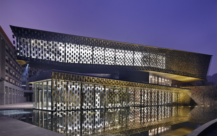 知·美術(shù)館是目前國(guó)際建筑設(shè)計(jì)大師隈研吾在中國(guó)所設(shè)計(jì)的唯一的美術(shù)館建筑。這一地處成都新津縣千年道家圣地老君山下的四層建筑,外立面是由用特殊材料的繩線串聯(lián)懸掛瓦片構(gòu)成,這些瓦片用當(dāng)?shù)夭牧虾蛡鹘y(tǒng)工法制作,表達(dá)對(duì)地方文脈的尊崇,并強(qiáng)調(diào)自然和平衡。在現(xiàn)場(chǎng)感受這棟仿佛能透氣會(huì)呼吸的建筑,低調(diào)地與周圍的大自然融為一體。最妙的是,從二樓開始即可享受到窗外美不勝收的老君山景觀。