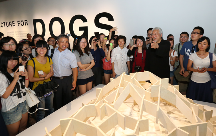 開館儀式結(jié)束后,美術(shù)館迎來(lái)了首個(gè)展覽——既好玩又有思想深度的展覽“設(shè)計(jì):為了愛犬”。這場(chǎng)展覽由原研哉主策劃,邀請(qǐng)13位(組)明星建筑師、產(chǎn)品設(shè)計(jì)師、交互設(shè)計(jì)師共同完成。展覽期間,隈研吾和原研哉親自在為觀展嘉賓講解各個(gè)妙趣橫生的設(shè)計(jì)作品。