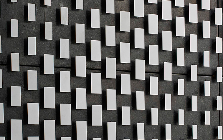 美術(shù)館VI主形象由日本平面設(shè)計(jì)大師原研哉擔(dān)任董事長(zhǎng)的日本設(shè)計(jì)中心設(shè)計(jì),主要是將外立面的瓦片加以變形設(shè)計(jì)而成。