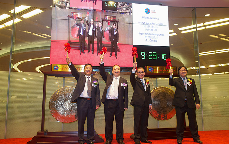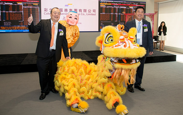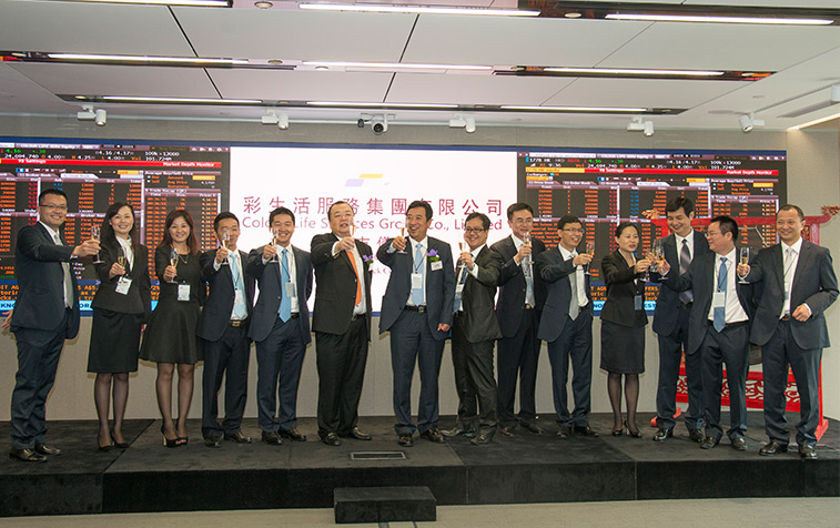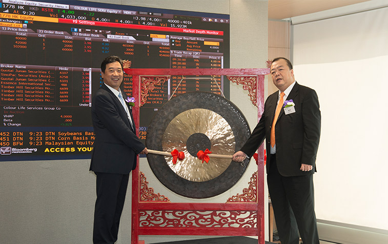 在和煦的香江晨光下,伴隨眾人的齊聲倒數(shù),2014年6月30日上午9:30,花樣年控股集團有限公司主席、彩生活服務(wù)集團主席潘軍和彩生活首席執(zhí)行官唐學(xué)斌共同敲響上市鐘聲,中國內(nèi)地社區(qū)運營第一股彩生活(01778.HK)正式登陸國際金融舞臺。